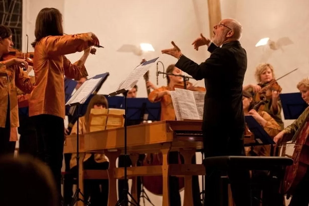 Well, in the very first years it was a bit different, but the most interesting thing is how we improved it quite quickly from about 1988 onwards. Basically, what we did was that we would go round all the conservatoires and all the main teachers of baroque instruments all over the world, actually, but obviously mainly in Europe, who we knew well by then. The students would be asked to come to a central place, usually in April, during the Easter holidays, before their final year in their conservatoire. We would have two courses of three to four days each, with about 60 people on each course. So we’d see about 120 students in total, and at the end we’d make a final selection of about 20 to 25 people to form that year’s orchestra. Then they would come together for the first tours, usually in early July, after most of them had finished their final exams at the conservatories. Then they would stay with us from July until Christmas, usually with about five tours of about two weeks each. About three of those tours would be with different musical directors playing different instruments. So if Ton Koopman was the main artistic director, he would obviously be playing the harpsichord and he would probably do the first tour and the fourth tour or something like that. Then we would have a violinist like Gottfried van der Goltz for the second tour, then we might have a cellist like Jaap ter Linden for another tour. It was always an important part of our philosophy that they should be players and not just conductors. Only very occasionally we had someone who actually stood up and waved a baton at the orchestra. Almost always they were playing an instrument. So very collaborative.